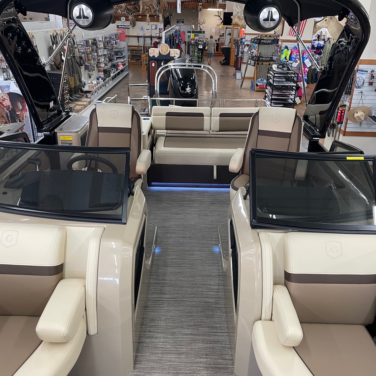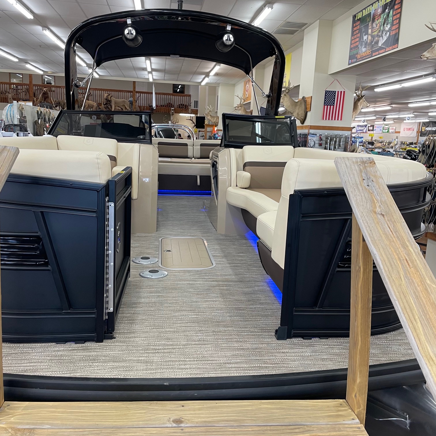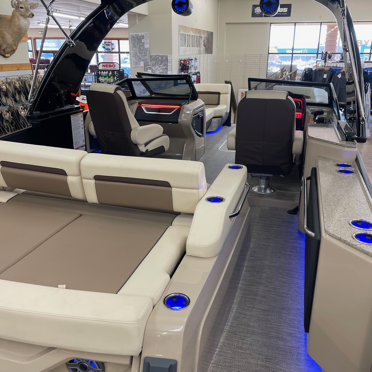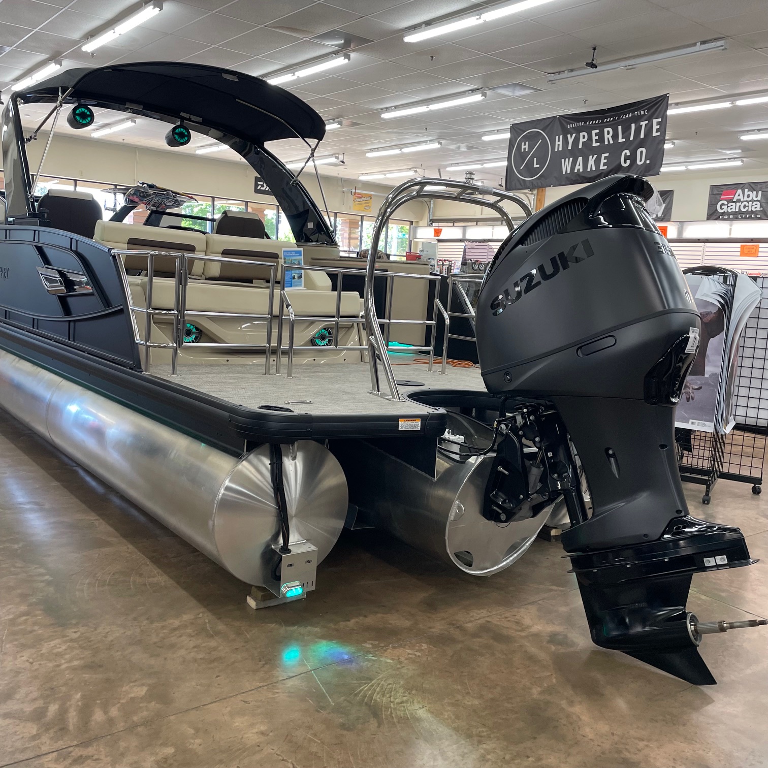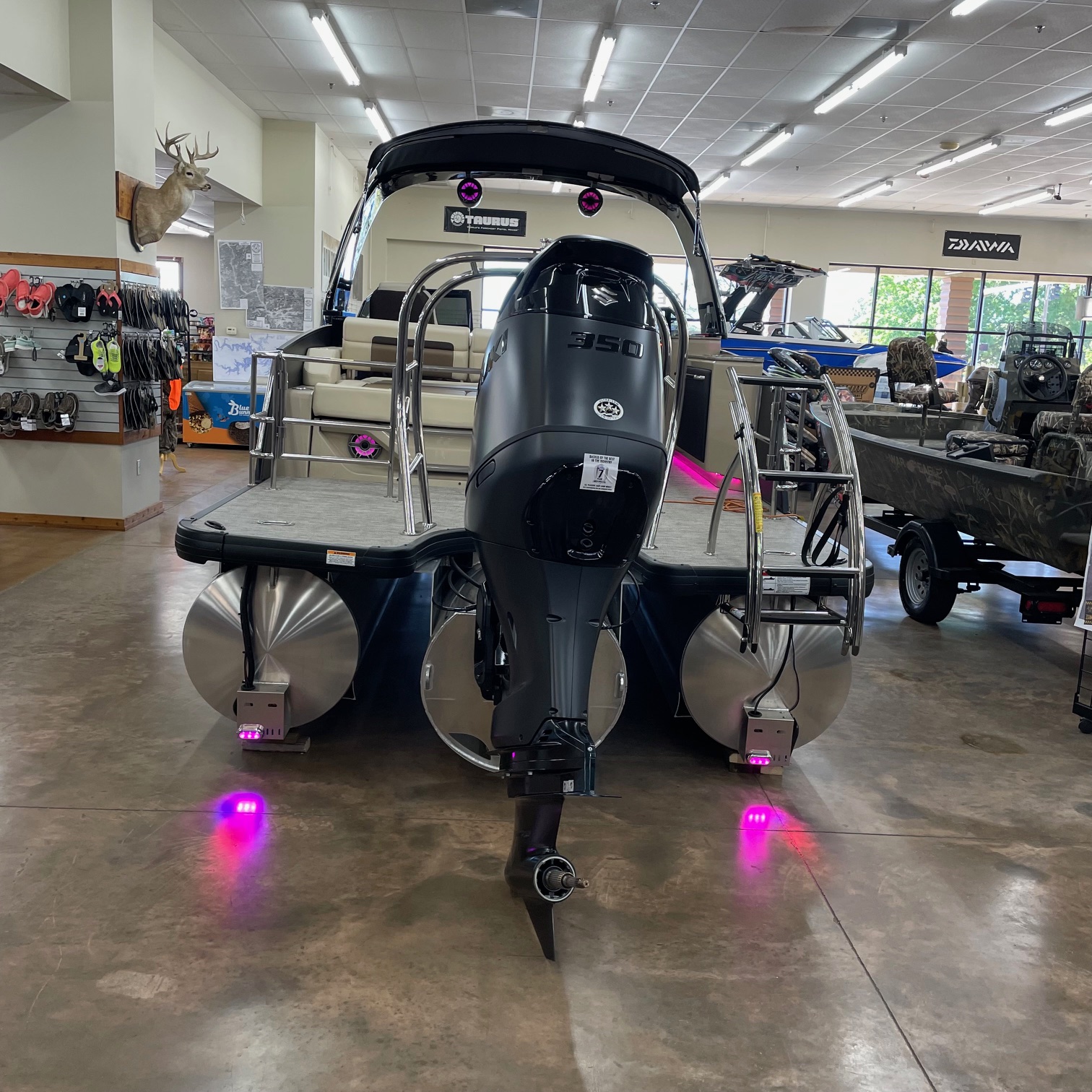 Packages: Back Porch package (adds 2' extension at rear), Full Sectrum RGB Color Lighting package (Underseat, courtesy, underdeck & underwater lights), Impact+ package (Two 27" outer tubes, one 29" center tube and more), Midnight package (black rails, canopy, corner castings, pull-up cleats & more).
